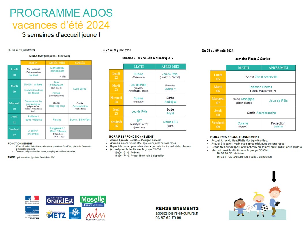 Reprise : se renseigner auprès de l'association ou sur ados@loisirs-et-culture.fr